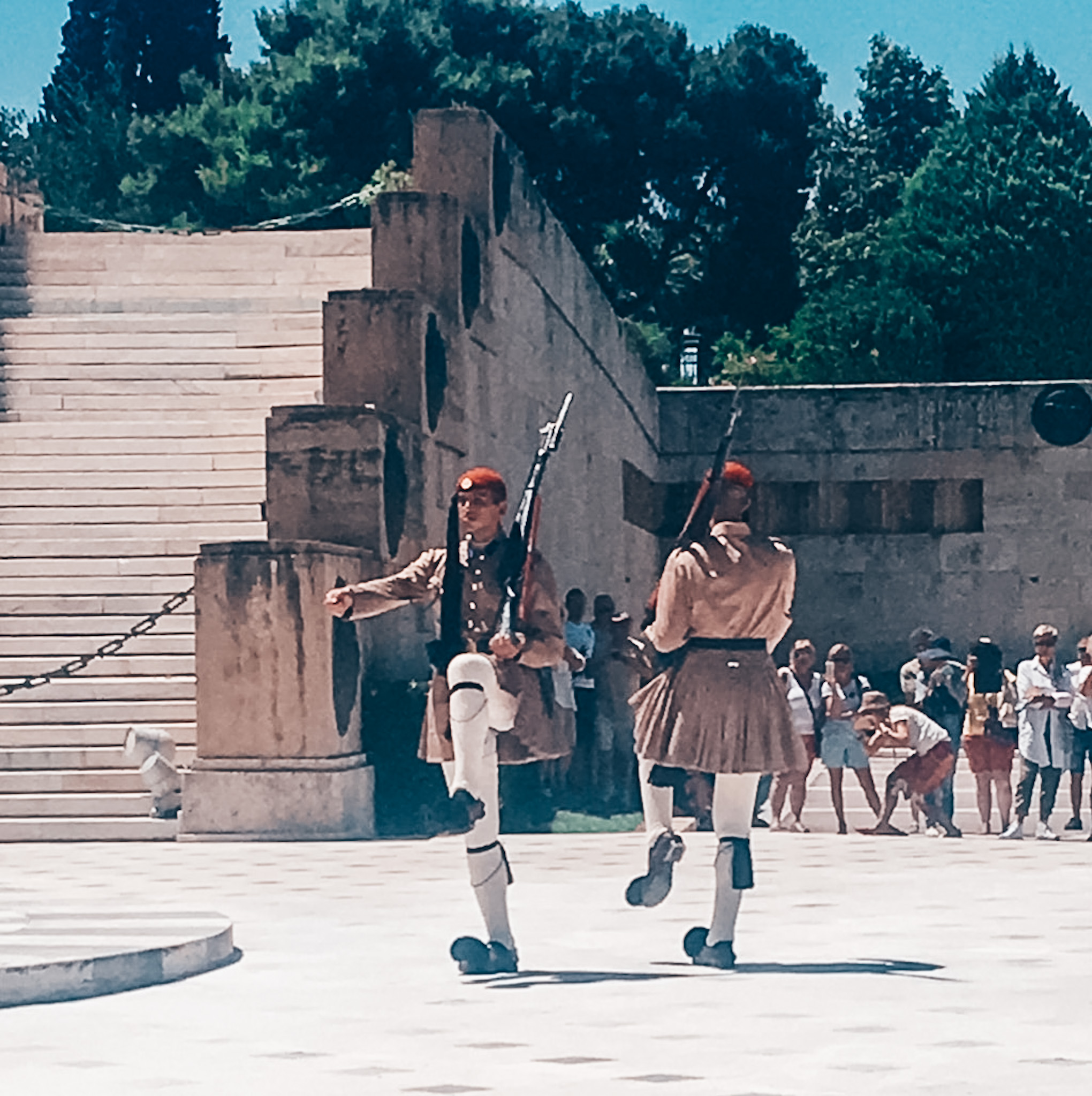 Restauranten ligger få meter fra delfinspringvandet ved Havnen i Boboulinas street. Du kan læse mere og finde adressen her